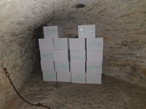 Eine Lichtinstallation im Hexenkeller zeigen, die über das Schicksal der in Salzkotten verhafteten und nach Wewelsburg gebrachten jüdischen Männer aufklärt.