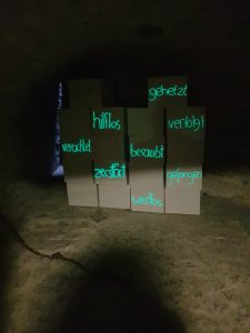 Eine Lichtinstallation im Hexenkeller zeigen, die über das Schicksal der in Salzkotten verhafteten und nach Wewelsburg gebrachten jüdischen Männer aufklärt.